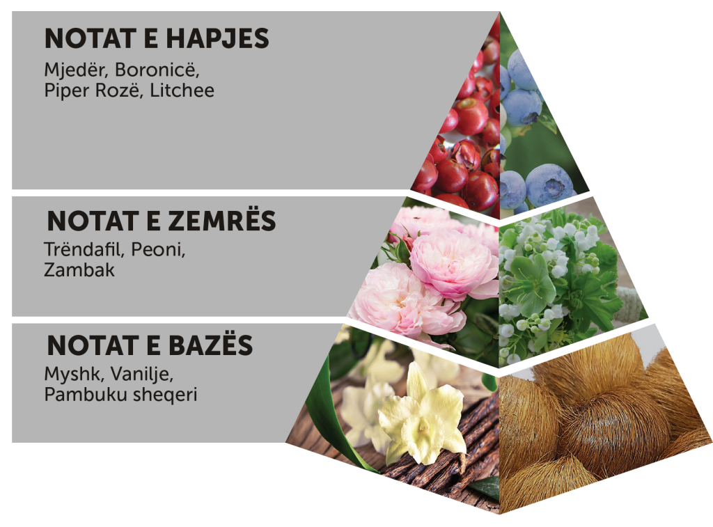 Një pasion i përhapur si një flakë, “HYPNOTIC PASSION” nis epshin e tij tërheqës midis notave të manave dhe litchi-së, që çojnë në një përzjerje dekadente të shijve frutore.